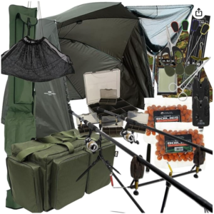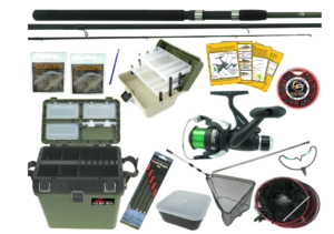 Complete Beginners Coarse Fishing Kit – 10ft Carbon Match Rod & HP40R Reel with 6lb Line – Includes Roddarch Seat Box, Tackle Box, Landing Net, Keep Net, Floats, Hooks & Weights